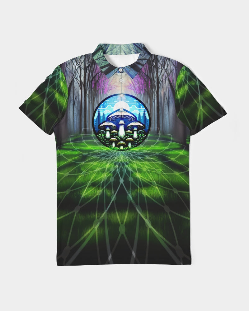 About The ArtIntroducing the Fungi Forest Men's Slim Fit Short Sleeve Polo, designed to provide a comfortable and stylish fit for the modern man. This polo is made with quality materials and features a sleek, slim cut for a flattering silhouette. Perfect for any occasion, this short sleeve polo is a must-have for any wardrobe. Fungi Focus Apparel Product DetailsLook sharp in this versatile polo, perfect for business casual or a polished weekender outfit. Our Men's Slim Fit Short Sleeve Polo features soft, breathable fabric with a close cut torso, tailored to show your natural physique. This polo shirt tends to run small. We always recommend ordering samples to ensure the fit is as expected.