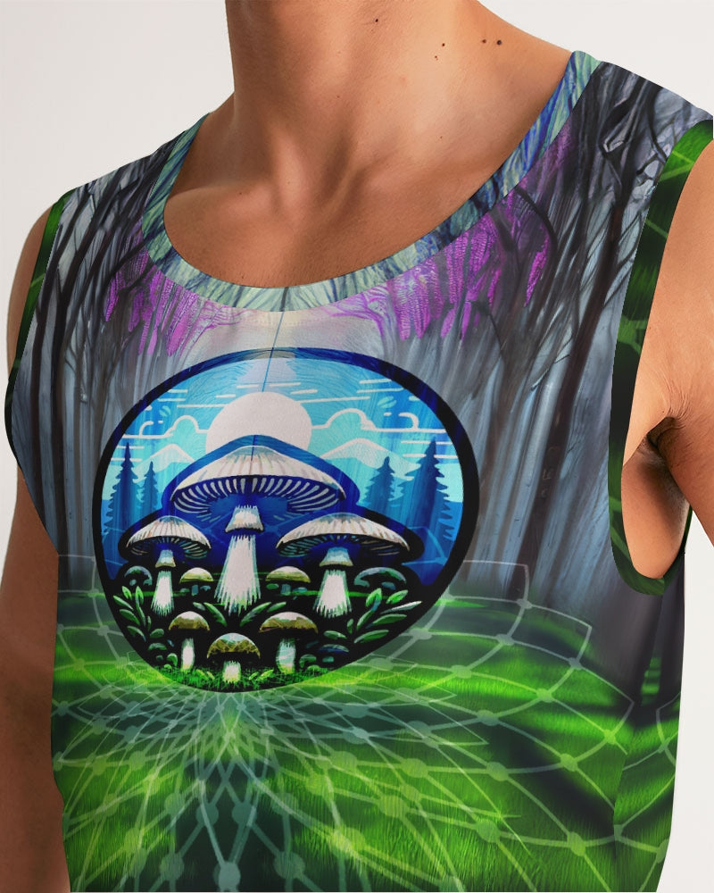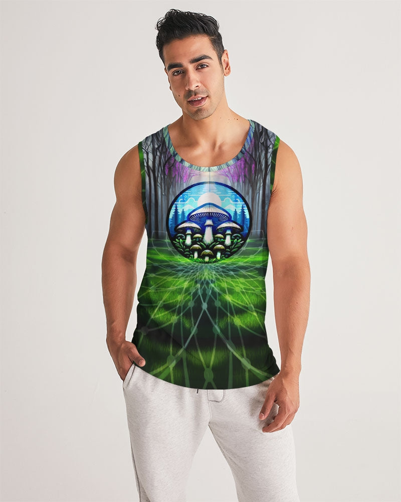 About The ArtIntroducing the Fungi Forest Men's Sport Tank. Made with high-quality materials, this tank offers superior comfort and breathability. Perfect for any physical activity, the tank's moisture-wicking technology keeps you cool and dry. With its sleek design, you'll look and feel your best in the gym or on the field. Upgrade your workout wardrobe today. Fungi Focus Apparel Product DetailsThe softest, most comfortable tank you'll ever meet. Our Men's Sport Tank is crafted from a soft and stretchy polyblend material, complete with a rib-knit trim and U-neck for a style that never fades.