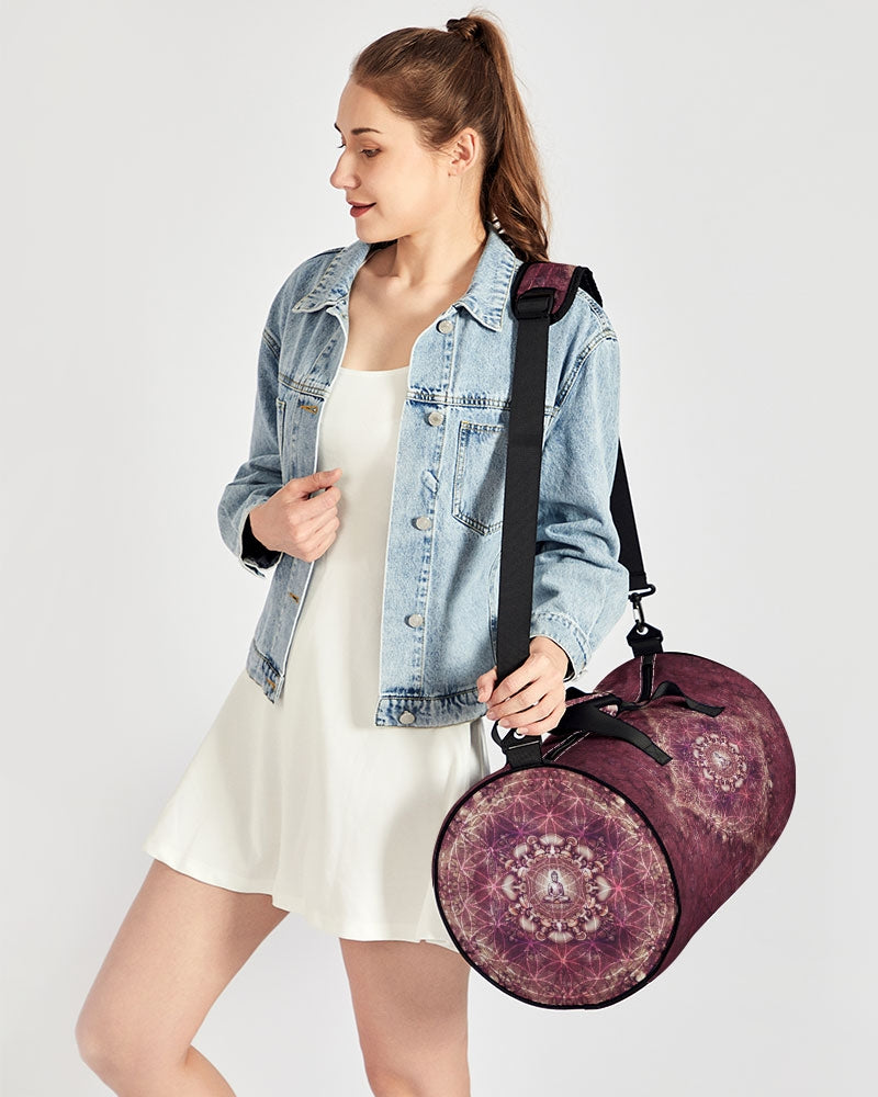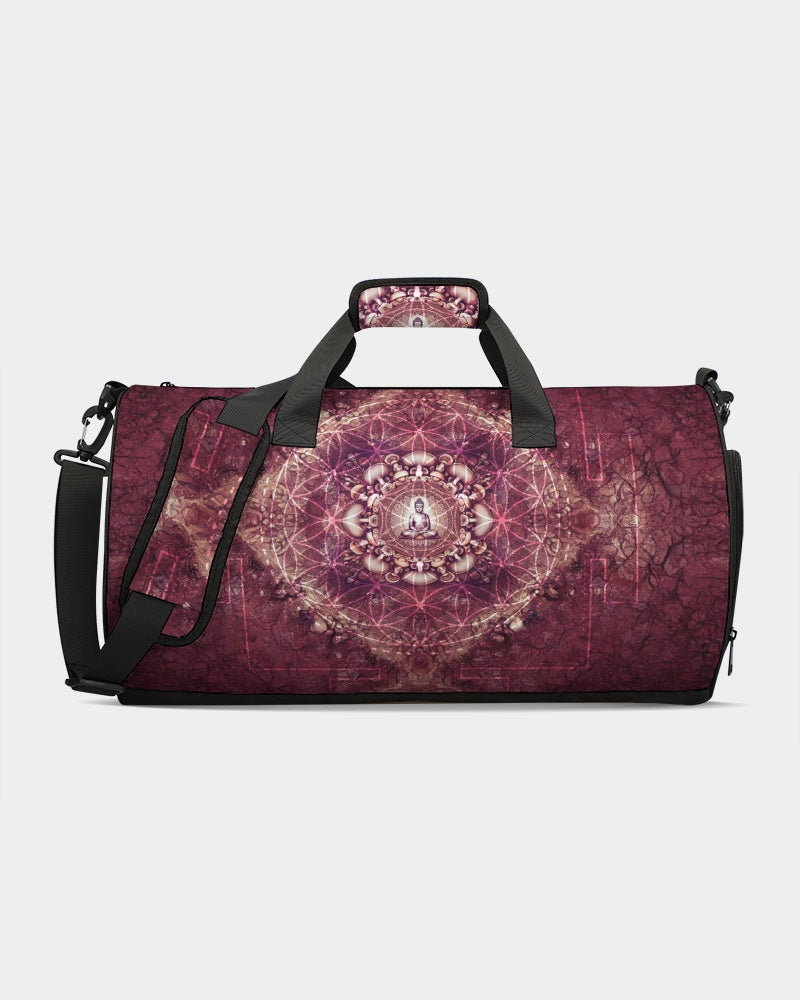 About The ArtMushroom Buddha designed for fungi focus Product DetailsOur Sports Duffle Bag is the ultimate companion for athletes and fitness enthusiasts. Featuring a dedicated shoe compartment, it keeps your sneakers separate from your gear, ensuring everything stays fresh. With two sturdy handles, a convenient top zipper, and an adjustable crossbody strap, this bag provides easy access and versatile carrying options for your gym or sports essentials, making it the perfect choice for workouts, games, and active lifestyles.