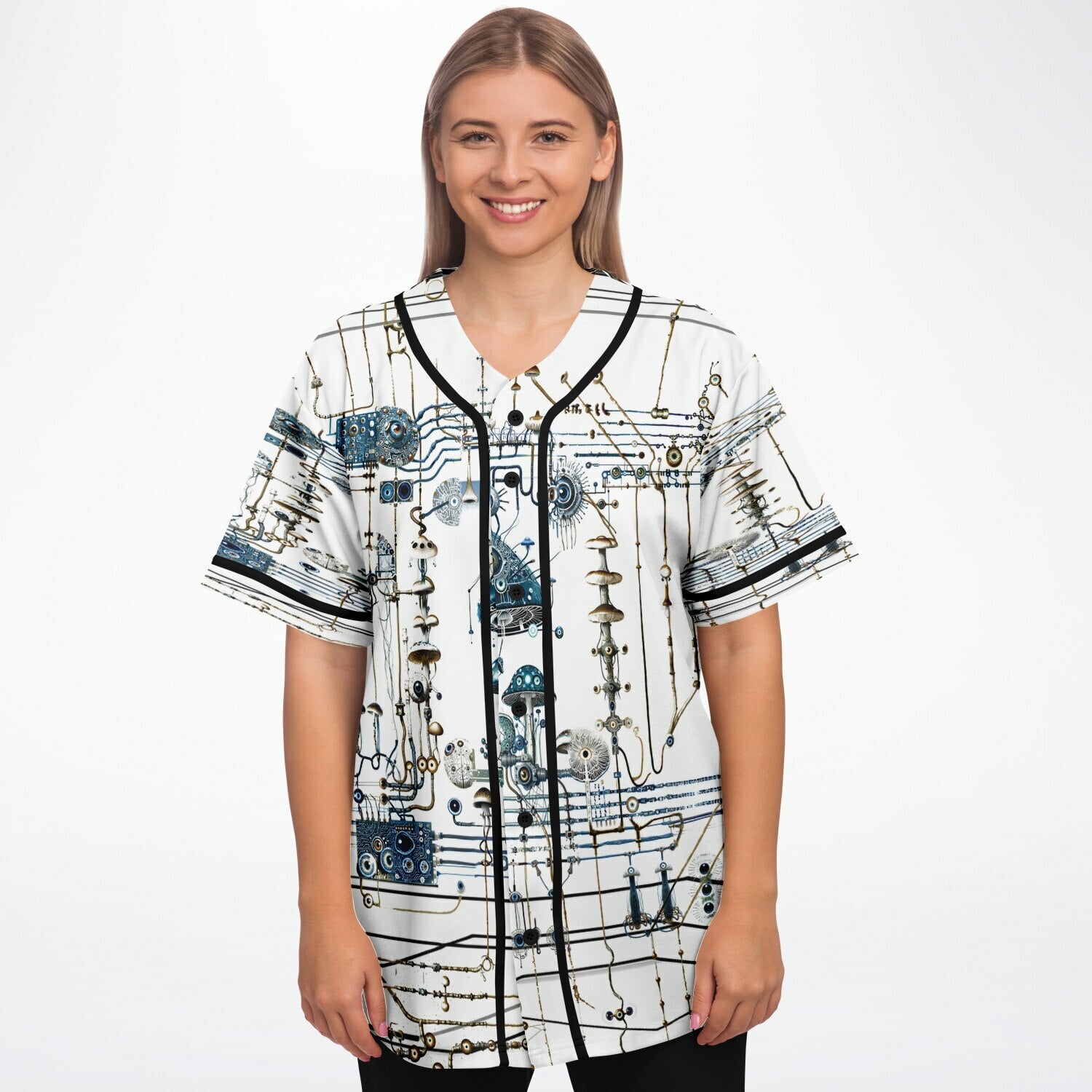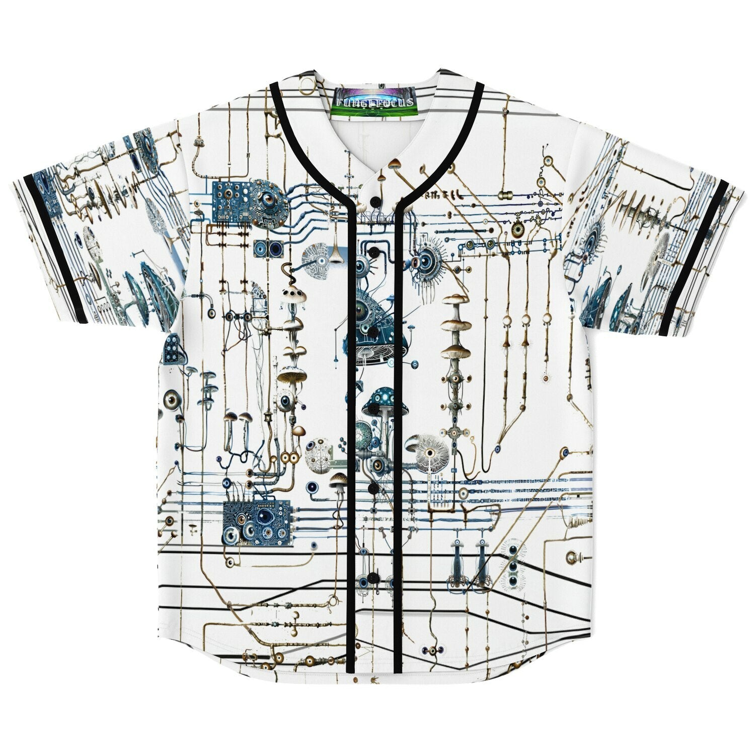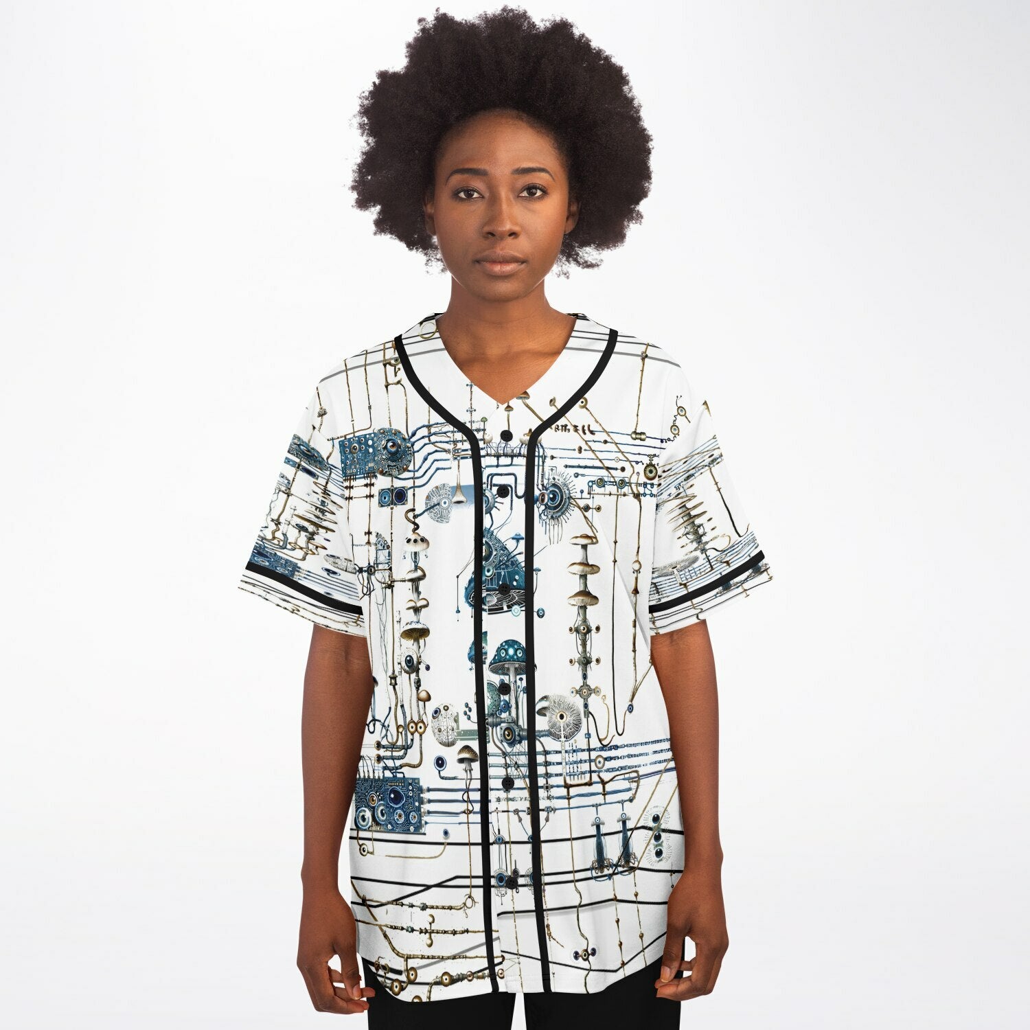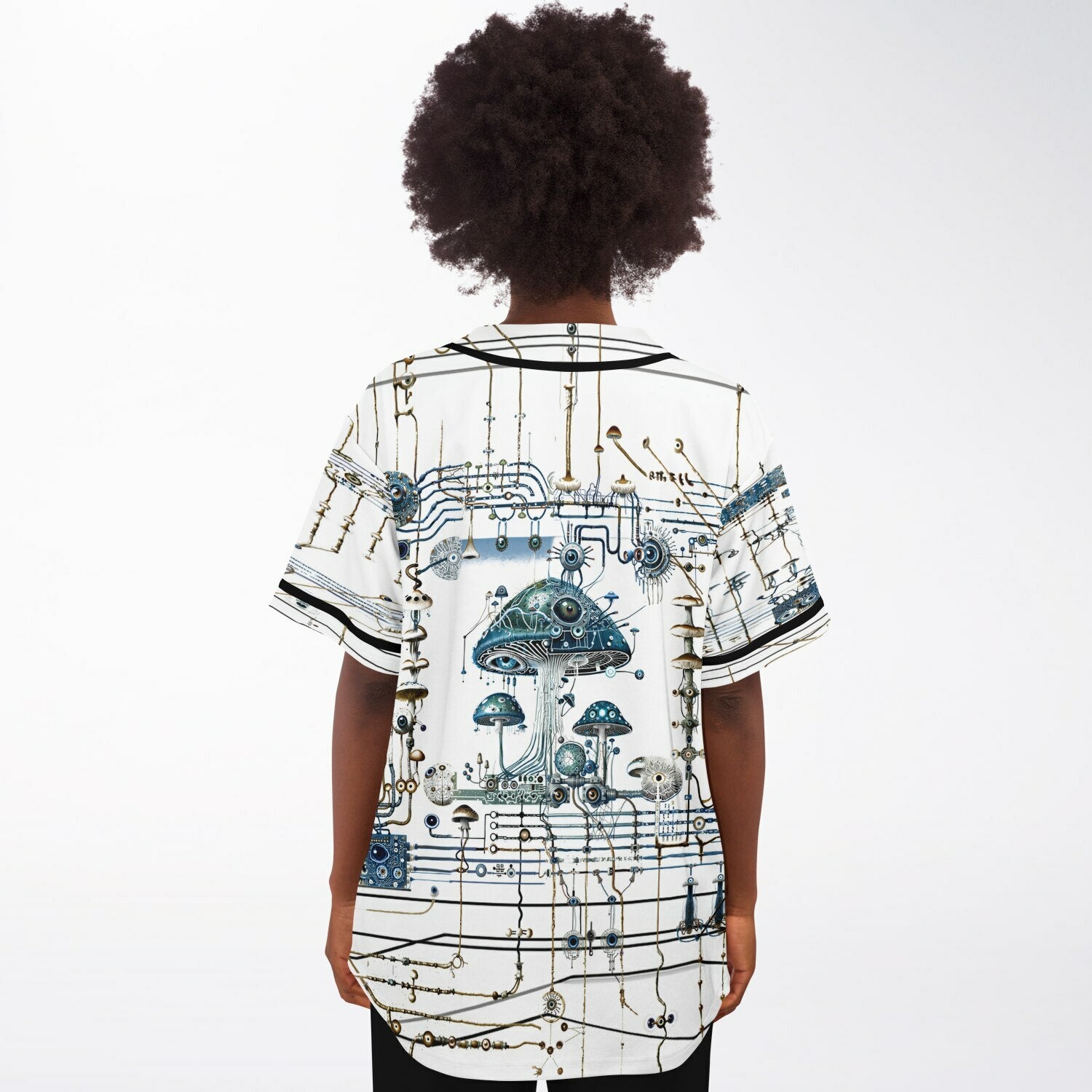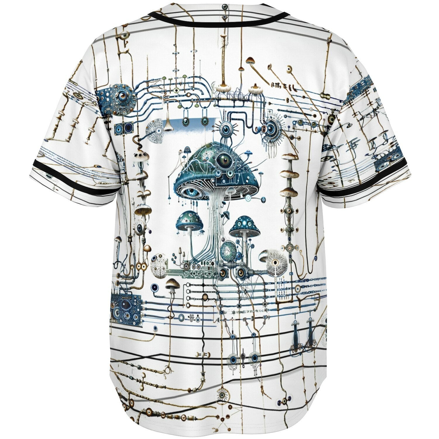 This baseball jersey looks great on and off the field. With a moisture-wicking fabric with a lightweight and breathable feel. And high-definition printing that won't fade after washing. Slip into style and elegance with the Mushroom Circuitry Baseball Jersey! Look sleek and polished on the field and beyond with its moisture-wicking fabric for a dry, comfortable experience. Stay light and cool with its breathable feel that lets you focus on the game. Plus, say goodbye to faded prints with its high-definition printing that lasts wash after wash!