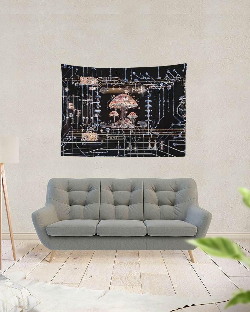 About The ArtMushroom Circuitry Dark designed for fungi focus Product DetailsDrape your home or dorm with an eye catching and unique statement piece. Perfect for indoor or outdoor use, our Tapestry will add a decorative yet personal touch wherever you hang it.