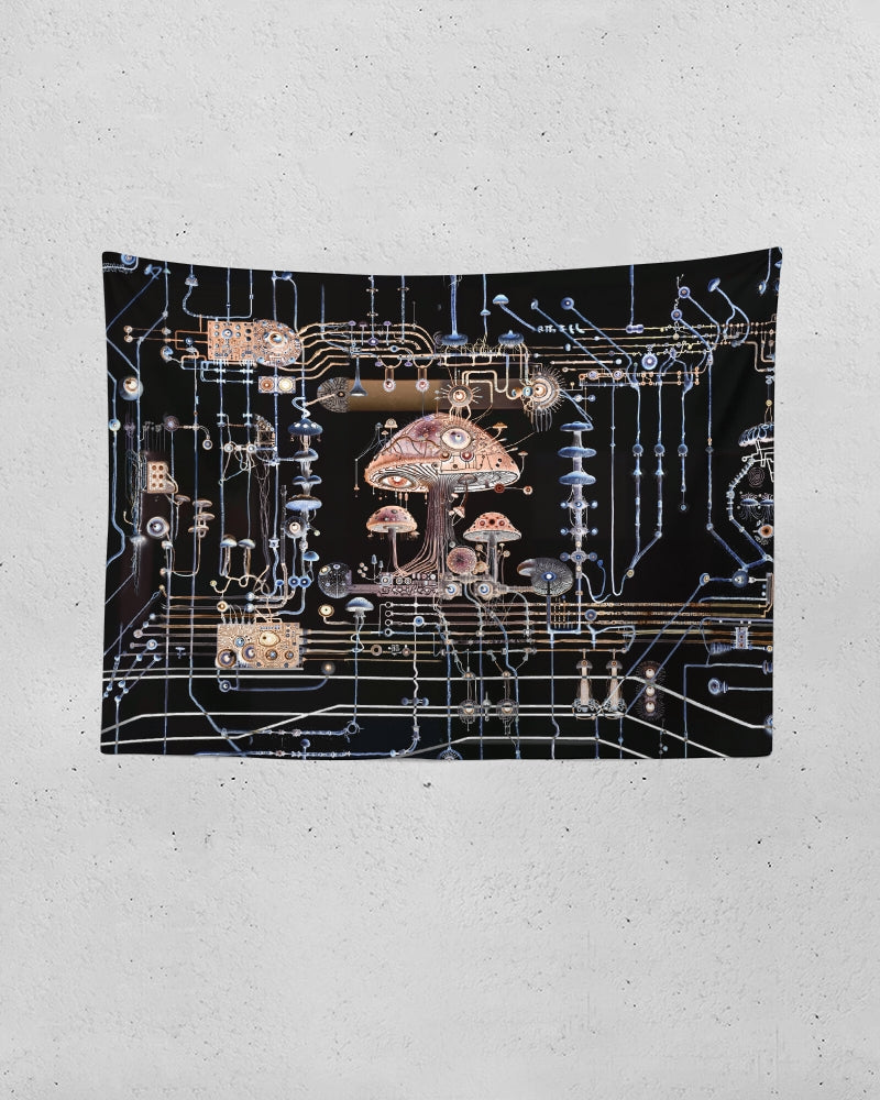 Mushroom Circuitry Dark Tapestry 80"x60"