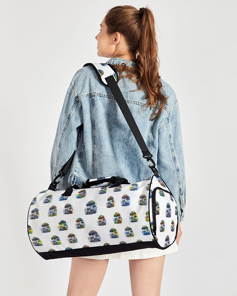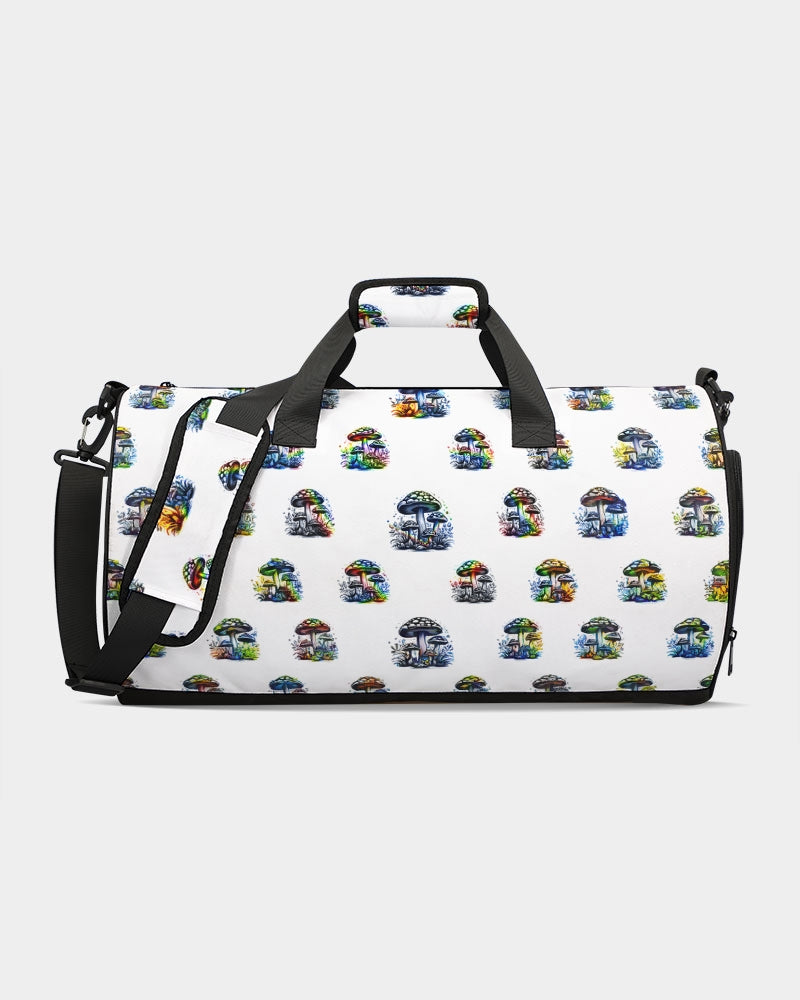 About The ArtMushy Rainbows designed for fungi focus Experience the ultimate in comfort and style with Mushy Rainbows Sports Duffle Bag. Whether you're hitting the gym or heading out for a weekend getaway, this duffle bag is designed to cater to your every need. Made for the true fungi enthusiasts, it's the perfect companion for your active lifestyle!