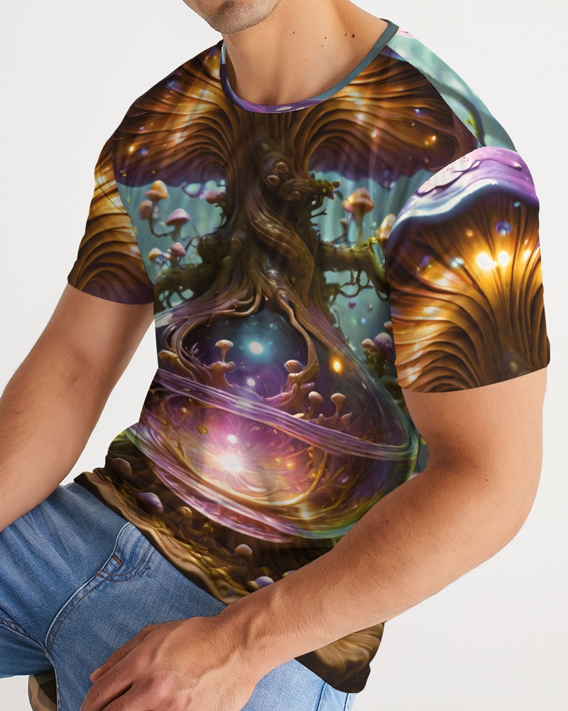 About The Art Opulence mushroom wonderland Product Details Handmade with premium wear resistant fabric, this carefully crafted tee is a daily wardrobe essential. Dressed up or down, our Men's Tee offers complete comfort and style. Soft, breathable fabric Crewneck Short sleeves Double needle topstitch hem Printed, cut, and handmade Size & Fit Designed for the modern man, this all-over print tee is crafted from premium wear resistant fabric, ensuring long-lasting durability. Its soft, breathable material offers all-day comfort and style. With a classic crewneck and short sleeves, this tee is perfect for any occasion. Plus, its double needle topstitch hem provides a clean, polished look. Available in a variety of sizes, this handmade tee is the essential addition to any man's wardrobe.