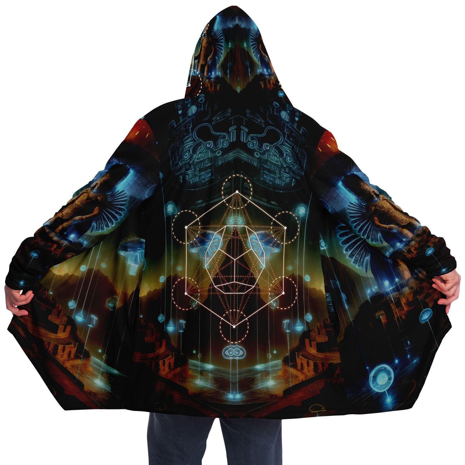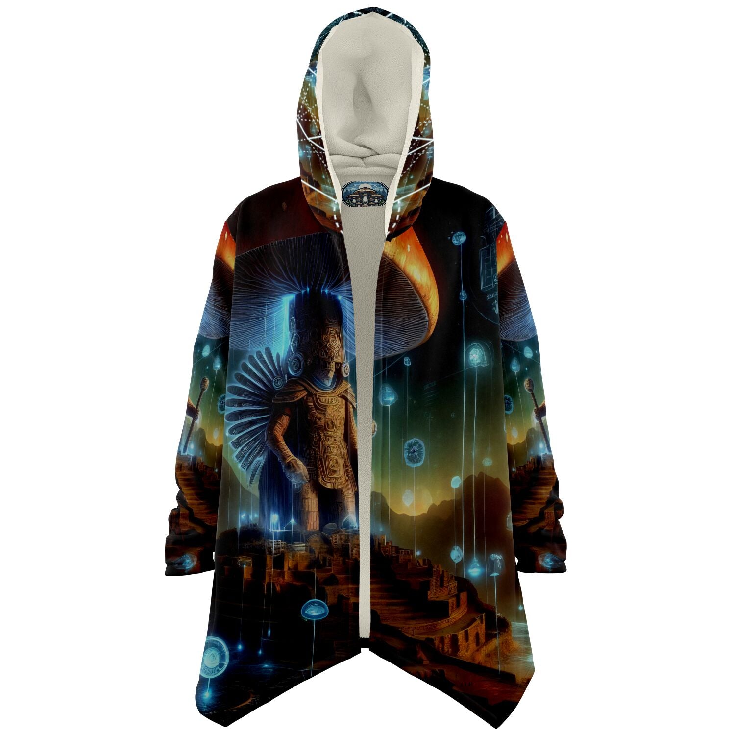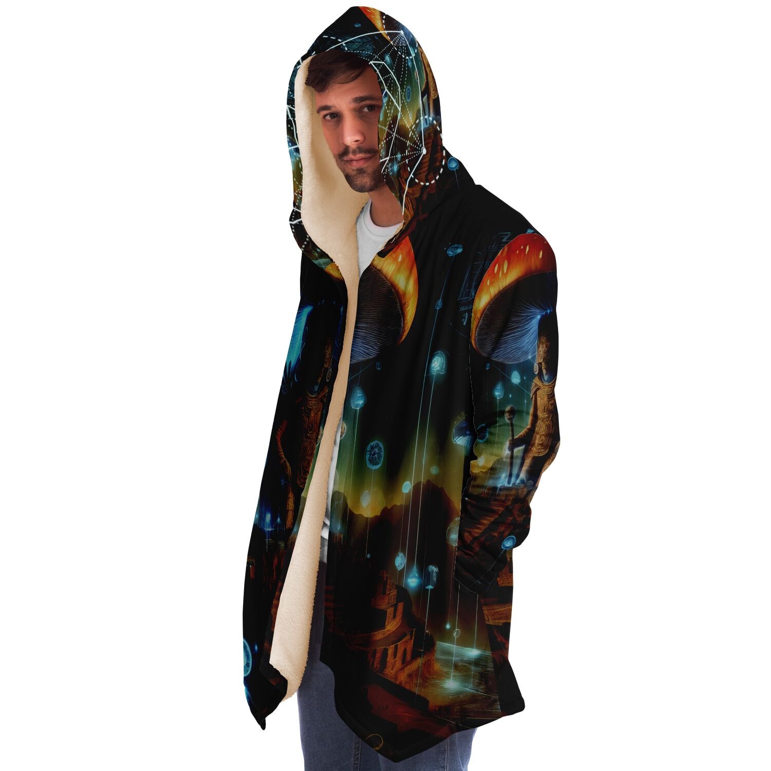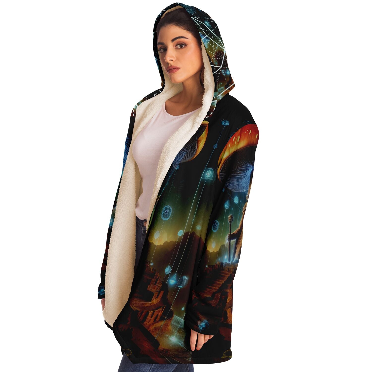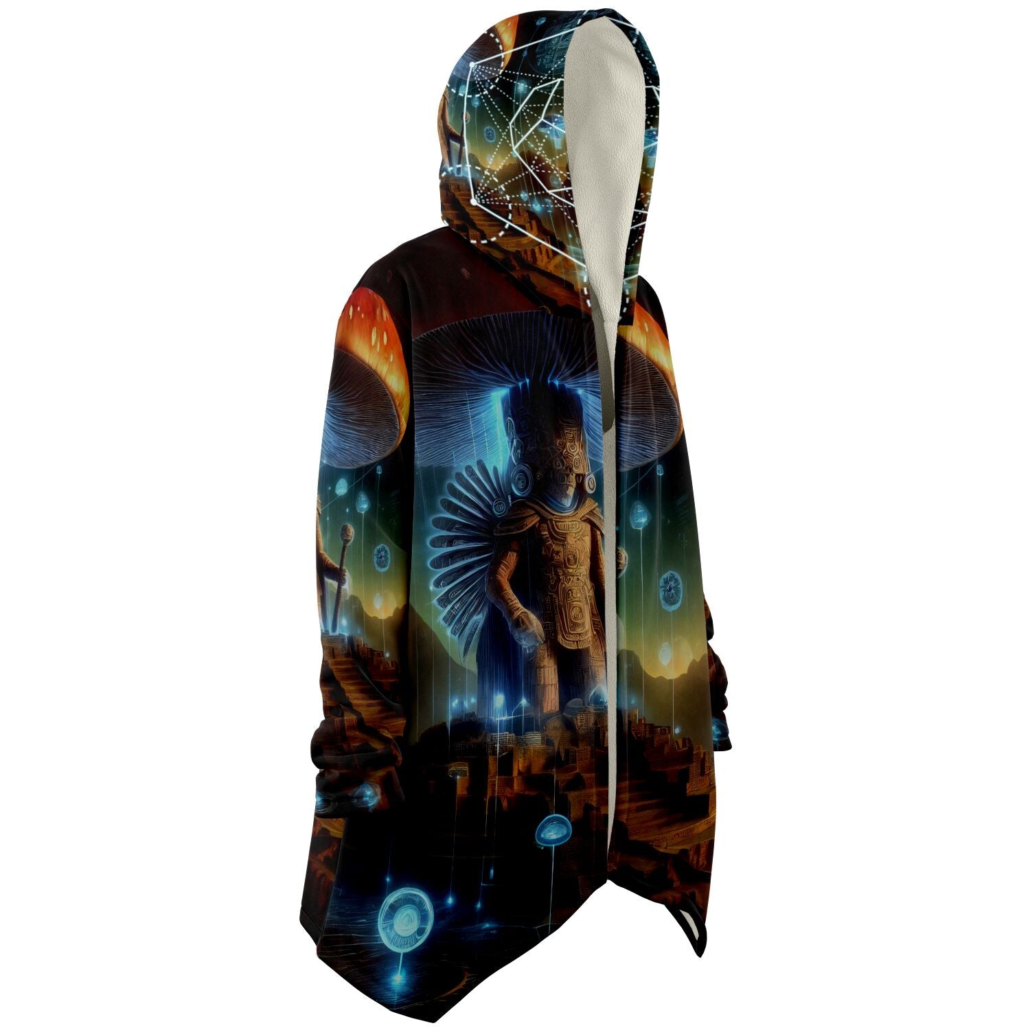 This luxurious cloak is made from an ultra-soft premium microfiber fleece lining. The outside is made with a micro-mink polyester fabric that allows the print to be high definition with vibrant colors. Featuring two deep side pockets to keep your belongings safe and your hands warm.