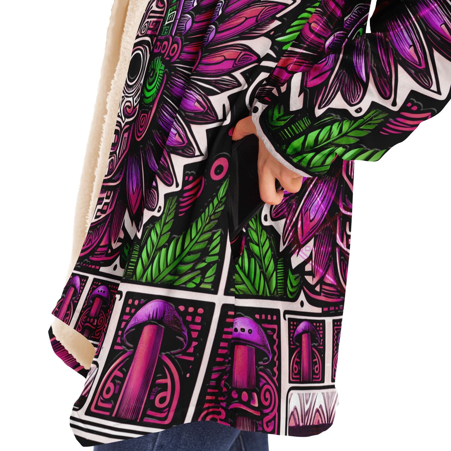 This luxurious cloak is made from an ultra-soft premium microfiber fleece lining. The outside is made with a micro-mink polyester fabric that allows the print to be high definition with vibrant colors. Featuring two deep side pockets to keep your belongings safe and your hands warm.